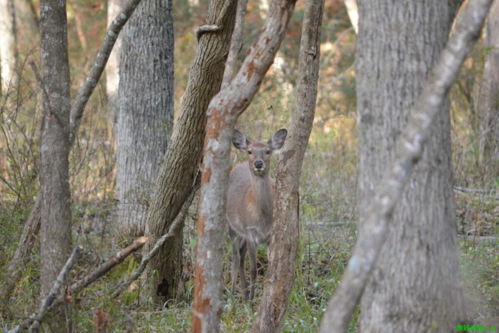 野生の動物が生息しているにおいがすると思ったら、「高丘森林公園」の入口付近に野生の鹿(エゾシカ)がいました。鹿の糞みたいなのが、あちこちにあるなと思っていたら本当に野生の鹿だったという驚き。