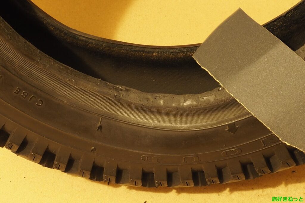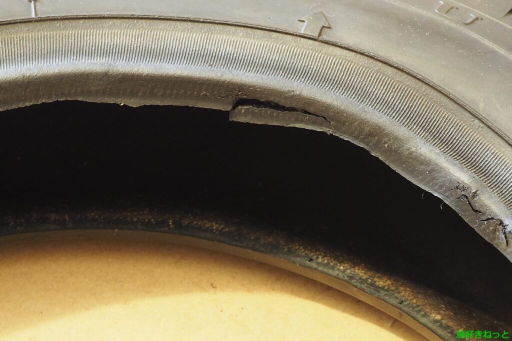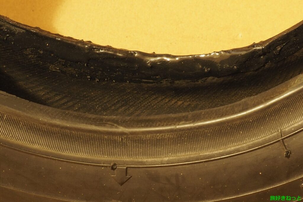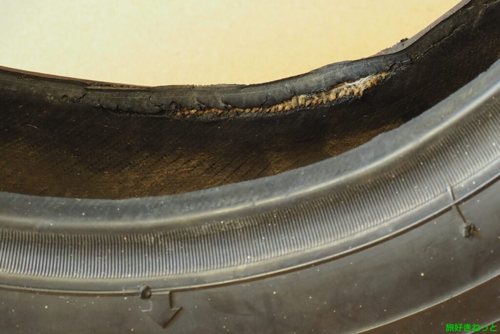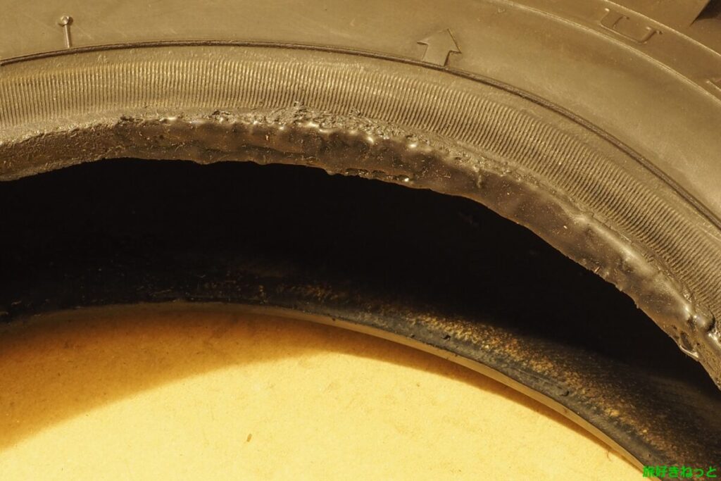 ビードワイヤは破損していないものの、外側のビードではなく、リムに密着する内側のビード部分がヤバい状態でした。