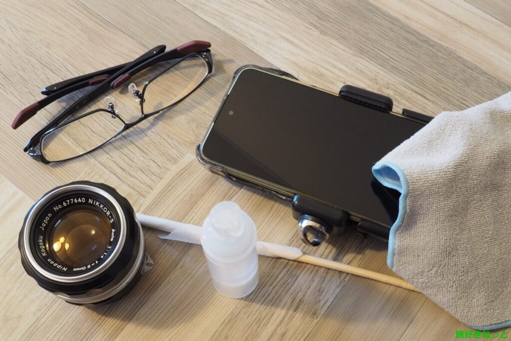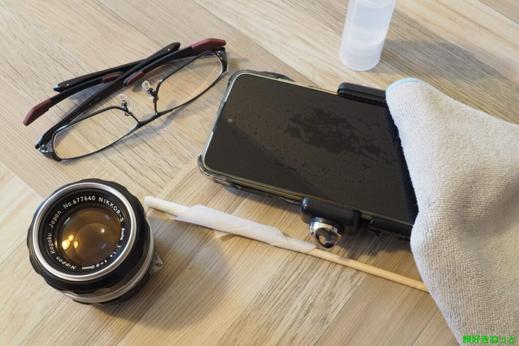 自作した液体クリーナーを使い、メガネ・カメラレンズ・スマホの液晶画面で試してみました。
