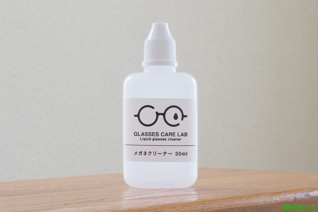 100均のメガネクリーナーは、水+界面活性剤のシンプルな構成で、指紋や皮脂汚れに強く、液晶画面にも使えるタイプです。