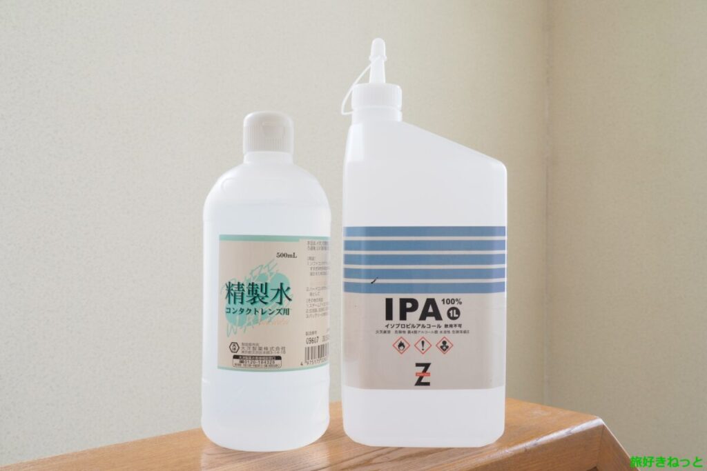 IPAで液体クリーナーを作る場合は、精製水を使う必要があります。
