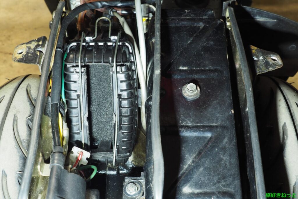 中古で購入した原付バイク「ストリーム(TB07)」の純正エアクリーナーは、改造されていなければパワーフィルターに交換する予定はなかったのですが、見事にエアクリーナーボックスに穴をあけて加工されていました。
