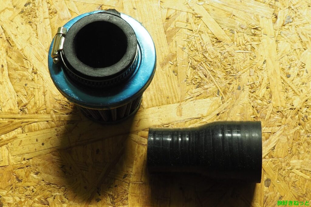 吸入側:口径25mmのキャブレターに口径35mmのパワーフィルターを取りけた方法
