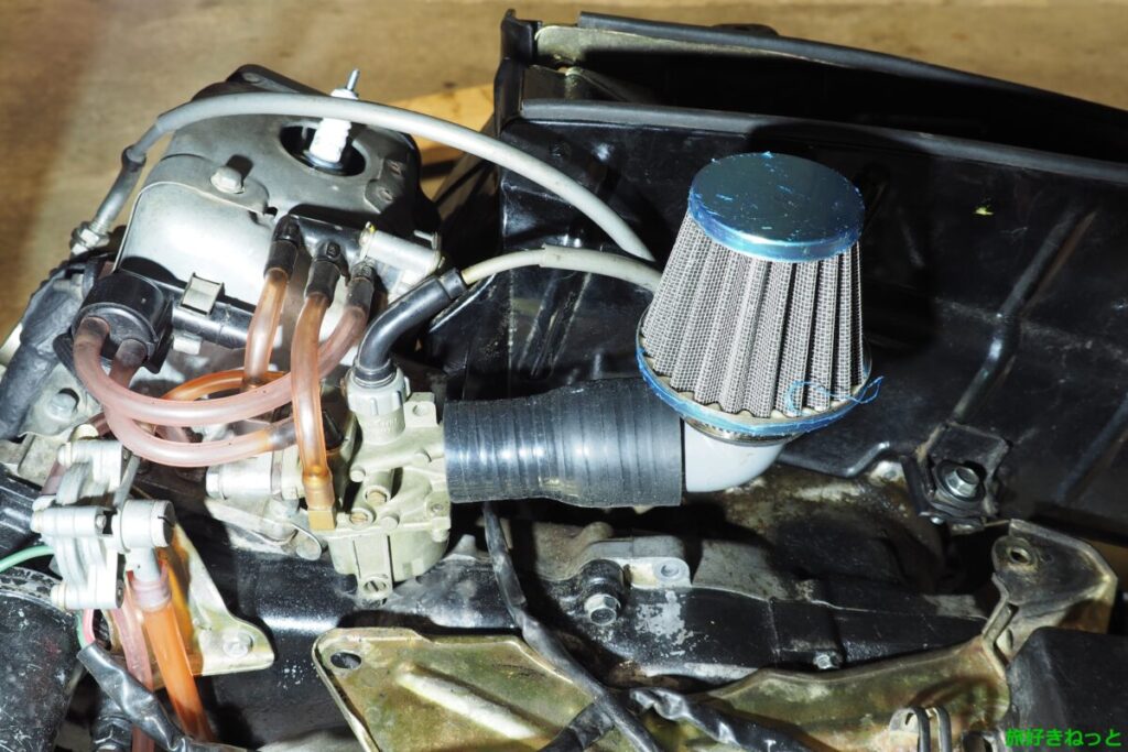 まぁ、エアクリーナーを取り付けないで直キャブ仕様にするよりかは、パワーフィルターを取り付けて、空気を吸う時に砂ぼこりなどを吸わせないようにできればいいので、高価なパワーフィルターは必要なし。