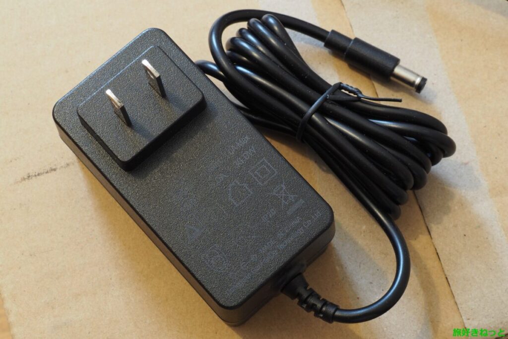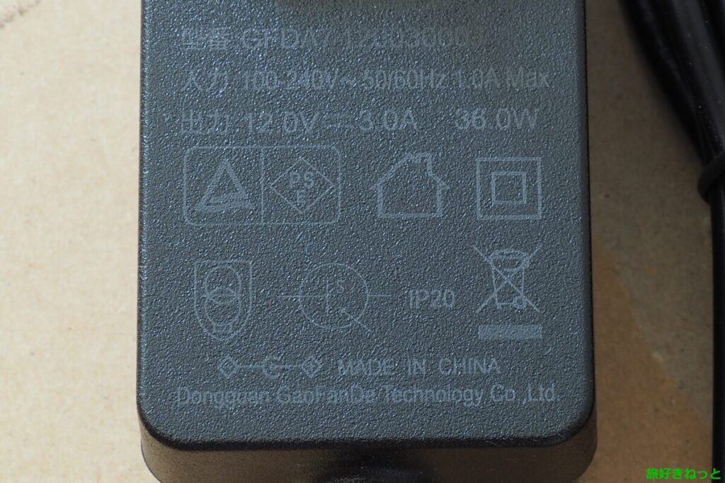 そこで、DC12V 3Aのアダプターで代用することにします。36Wであれば定格消費電力33Wに近く、過負荷の心配も少ないため安全圏と判断しました。