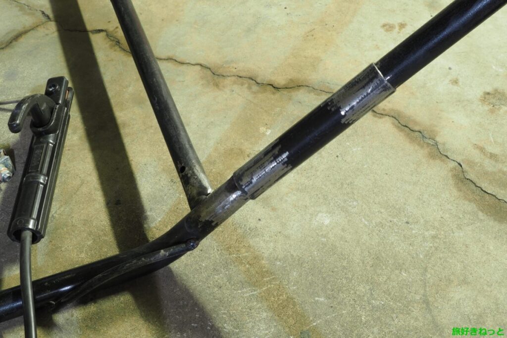 ハンドルパイプを外側スリーブで補強し、溶接で強化