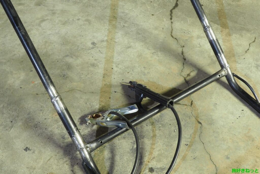 左右のハンドルパイプが折れたので溶接で繋ぎ直し