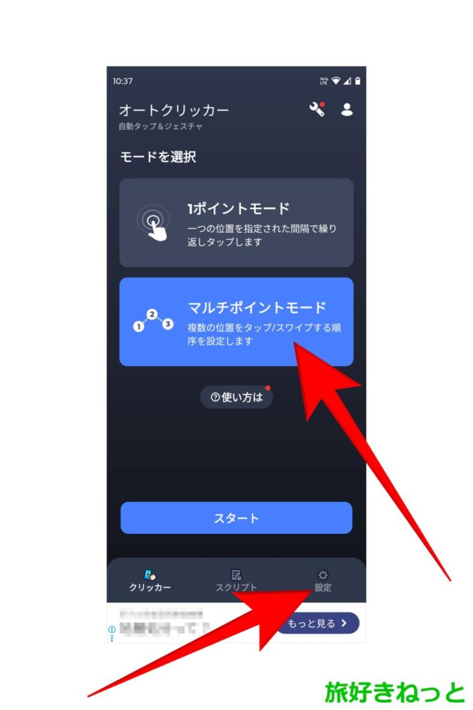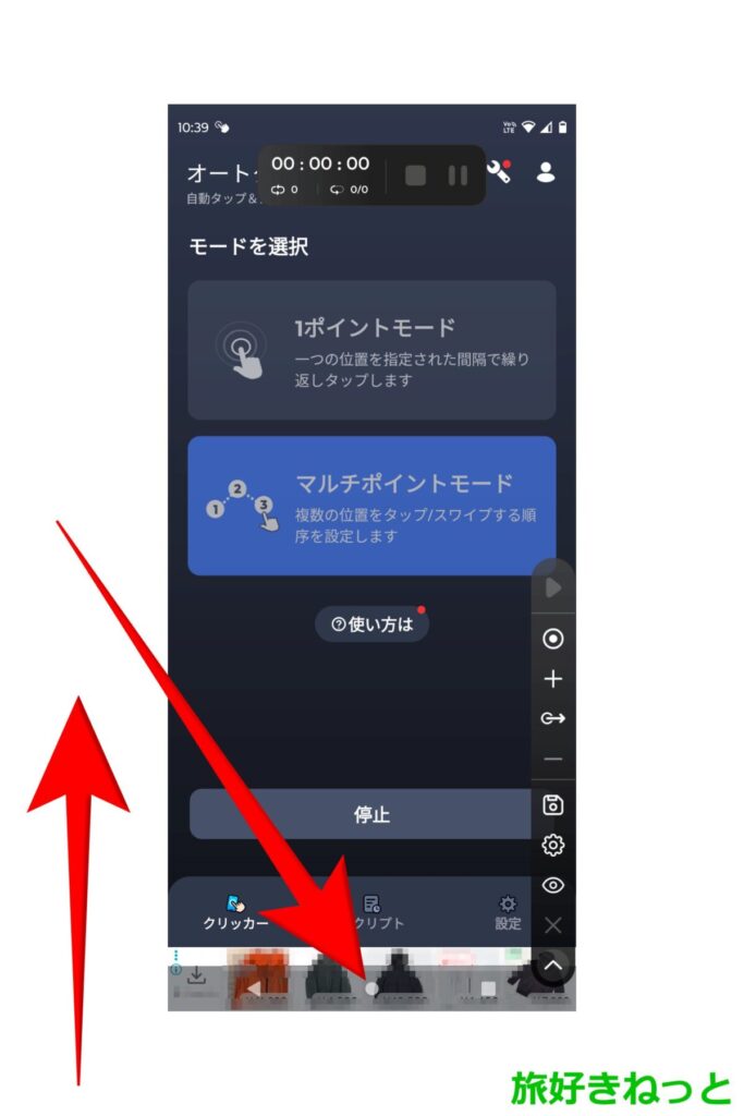 TikTok Lite用にスワイプを自動化するには、オートクリッカーのモード選択を「マルチポイントモード」にします。