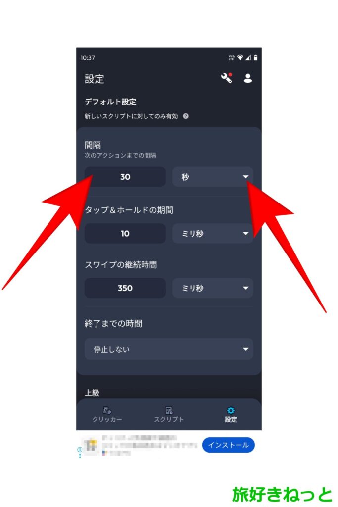 「上にスワイプ」が基本で、TikTok Liteのおすすめ動画を見てギフトを貯めると思いますが、オートクリッカーの自動スワイプを「上にスワイプ」に設定にしていると、「上にスワイプしてインストール」の広告が流れてきた時に、ここで止まってしまうことがあります。