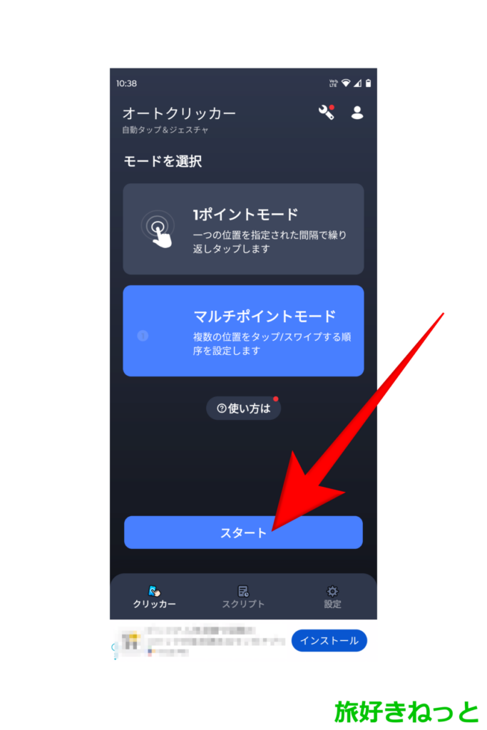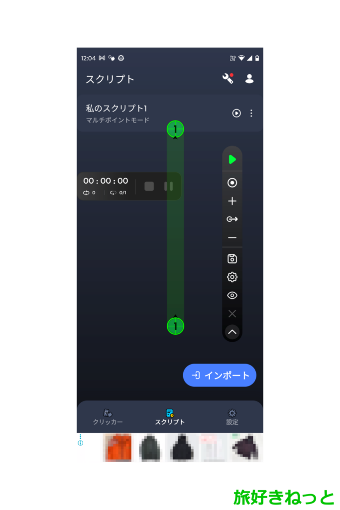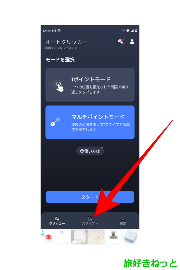 オートクリッカーの画面下部にある「スクリプト」をタップします。