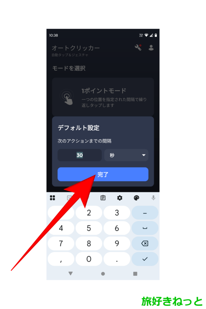 次のアクションまでの間隔が表示されます。先ほど設定した間隔になっていれば、「完了」ボタンをタップします。