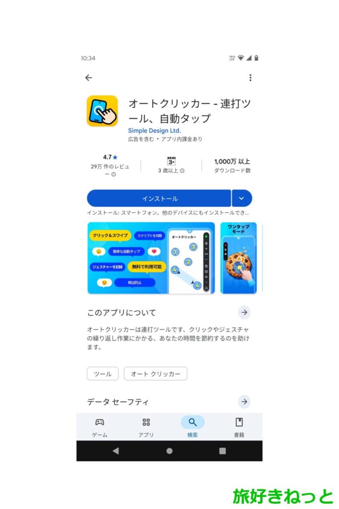 Android用のオートクリッカーは、「オートクリッカー – 連打ツール、自動タップ」という名のアプリを使用します。