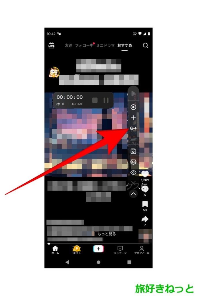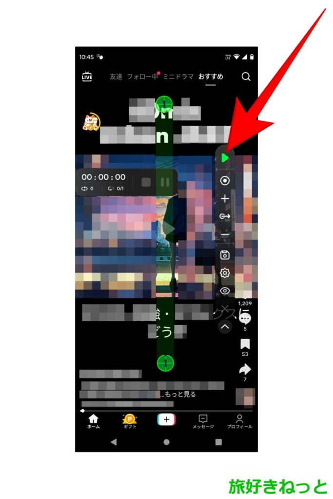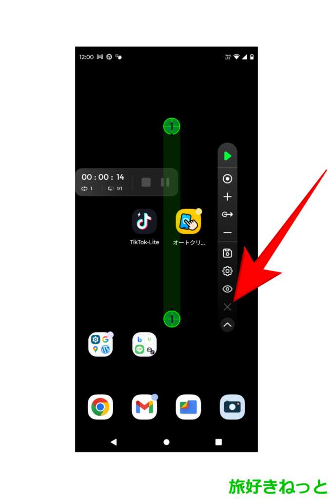 コントロールバーなどが表示されましたが、TikTok Liteでオートクリッカー(自動スワイプ)を使いたいので、オートクリッカーの画面を消します。