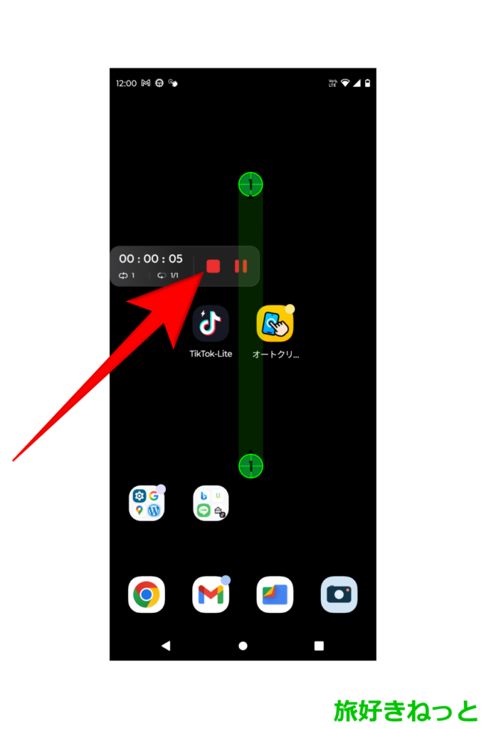 オートクリッカーの自動スワイプをTikTok Lite動画(ポイ活)上で動かす