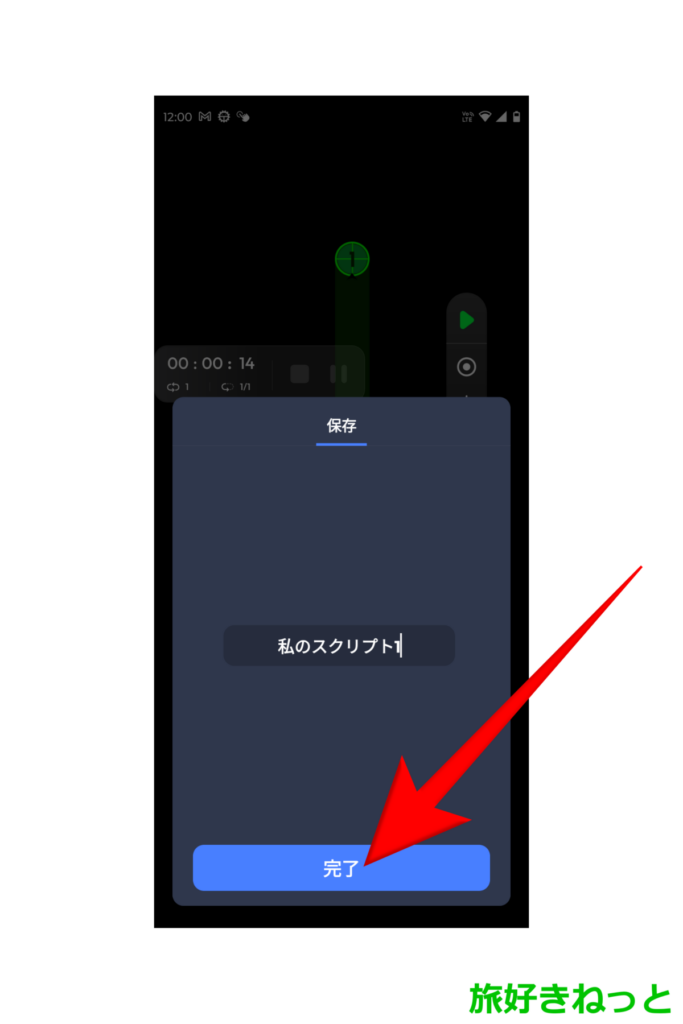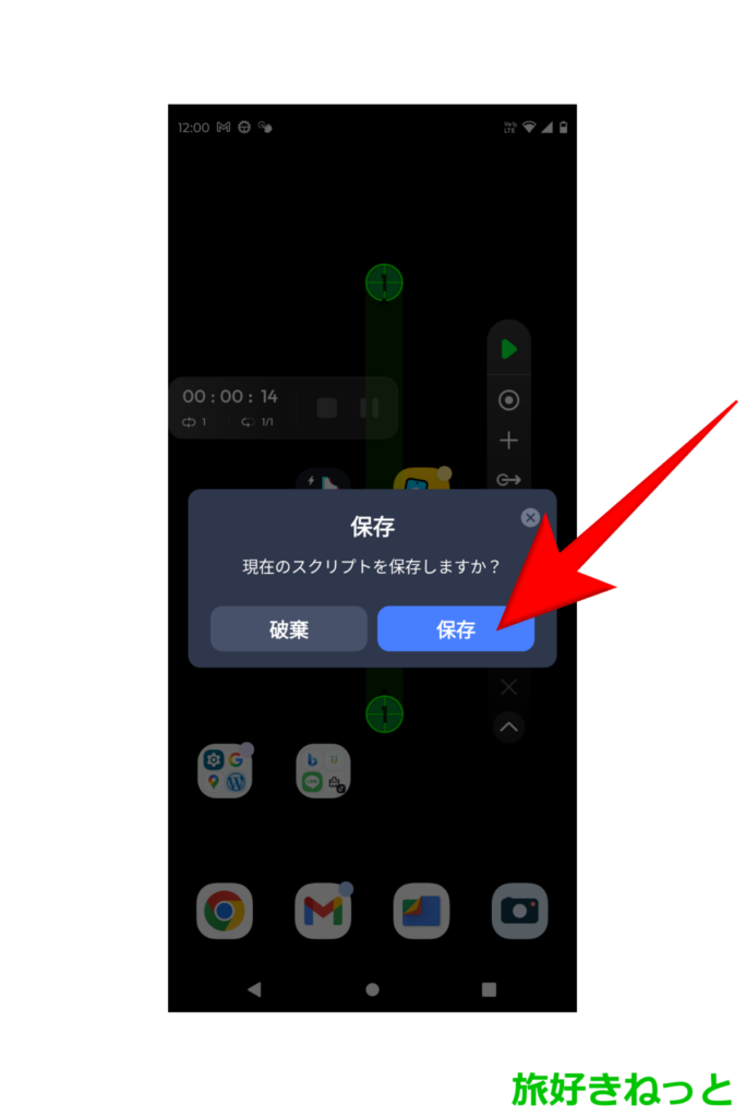 すると、現在のスクリプトを保存しますか?の画面が出現しますので、「保存」ボタンをタップします。