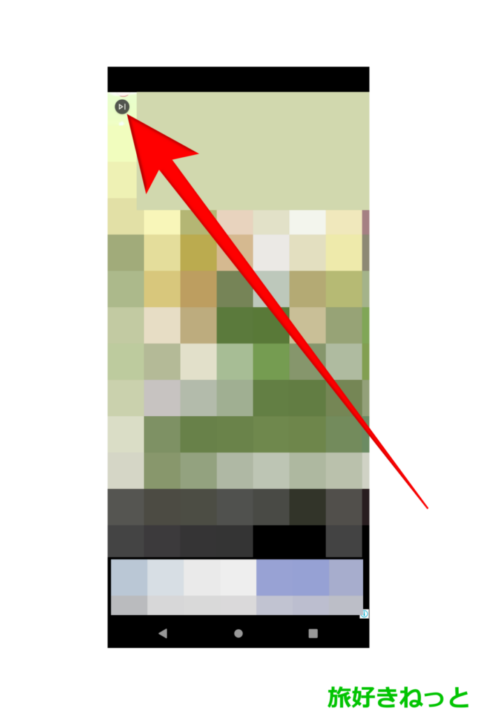 この広告の閉じ方は、左上にある丸いアイコンがあるのでタップしてください。