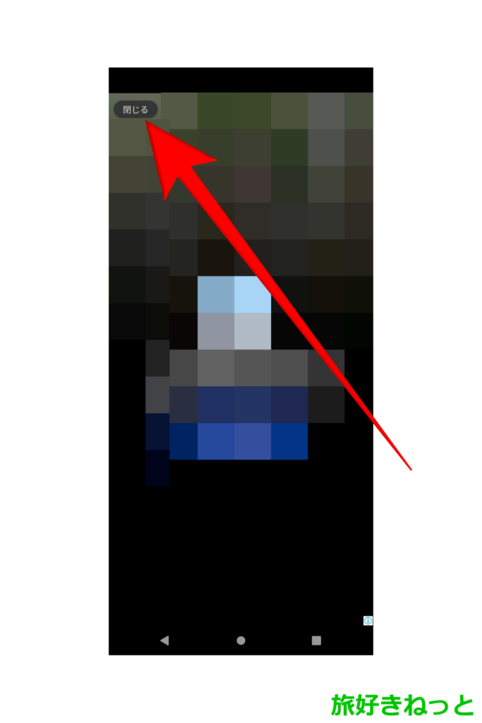 すると、「閉じる」に切り替わるので、タップすると広告が消えます。