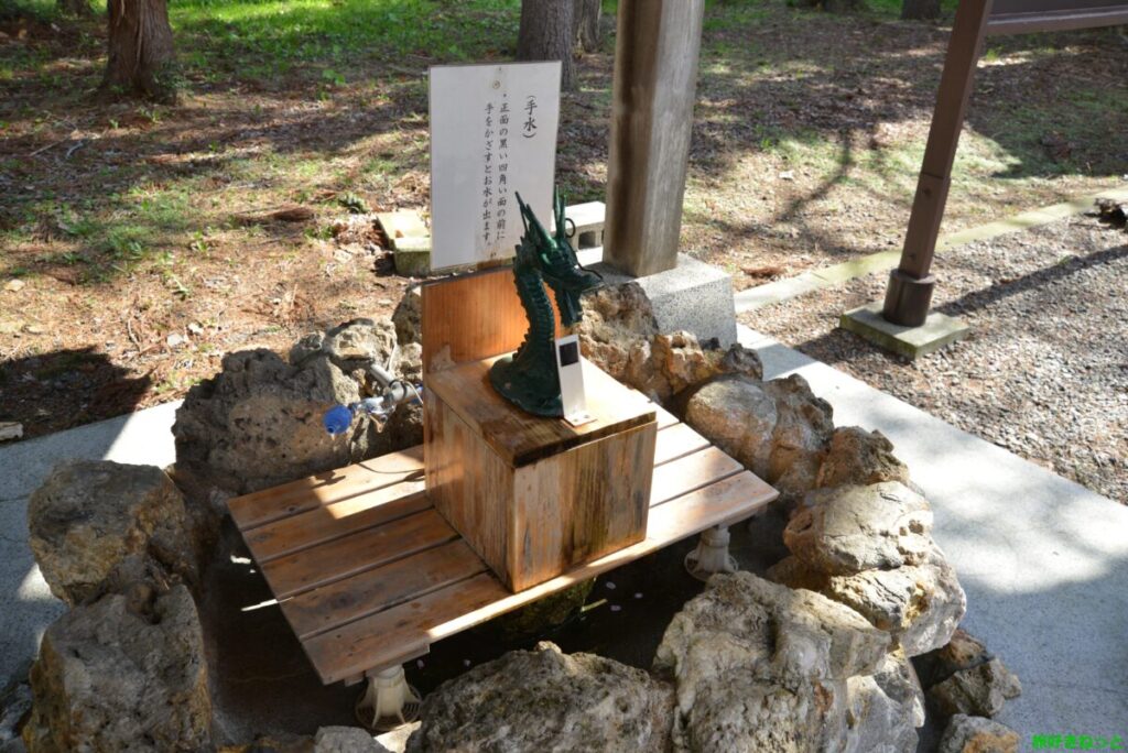 手水は、正面の黒い四角い面の前に手をかざすとお水が出ます。(センサー)